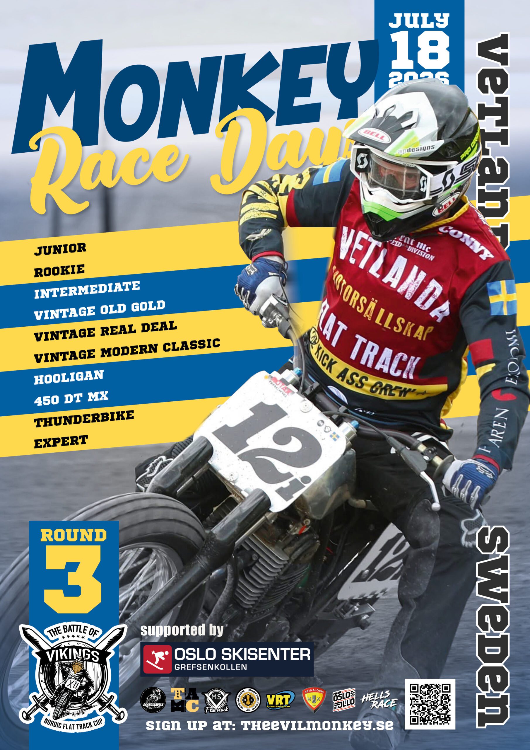 MX/flat track jersey in ventilated lightweight material that withstands many washes and dries quickly. Make your own design or let us do it after your instructions. Discount when ordering five shirts or more. With your/s start number and name on the back. Enter size Small-XXXLarge, your start number and name. Expect delivery apx 3 weeks. The pictures are samples of what we already delivered.